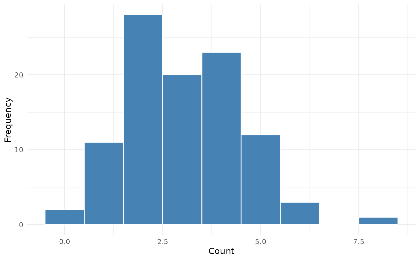 data.framewith columnscountandfreqgiving the frequency of each observed count value.- plot