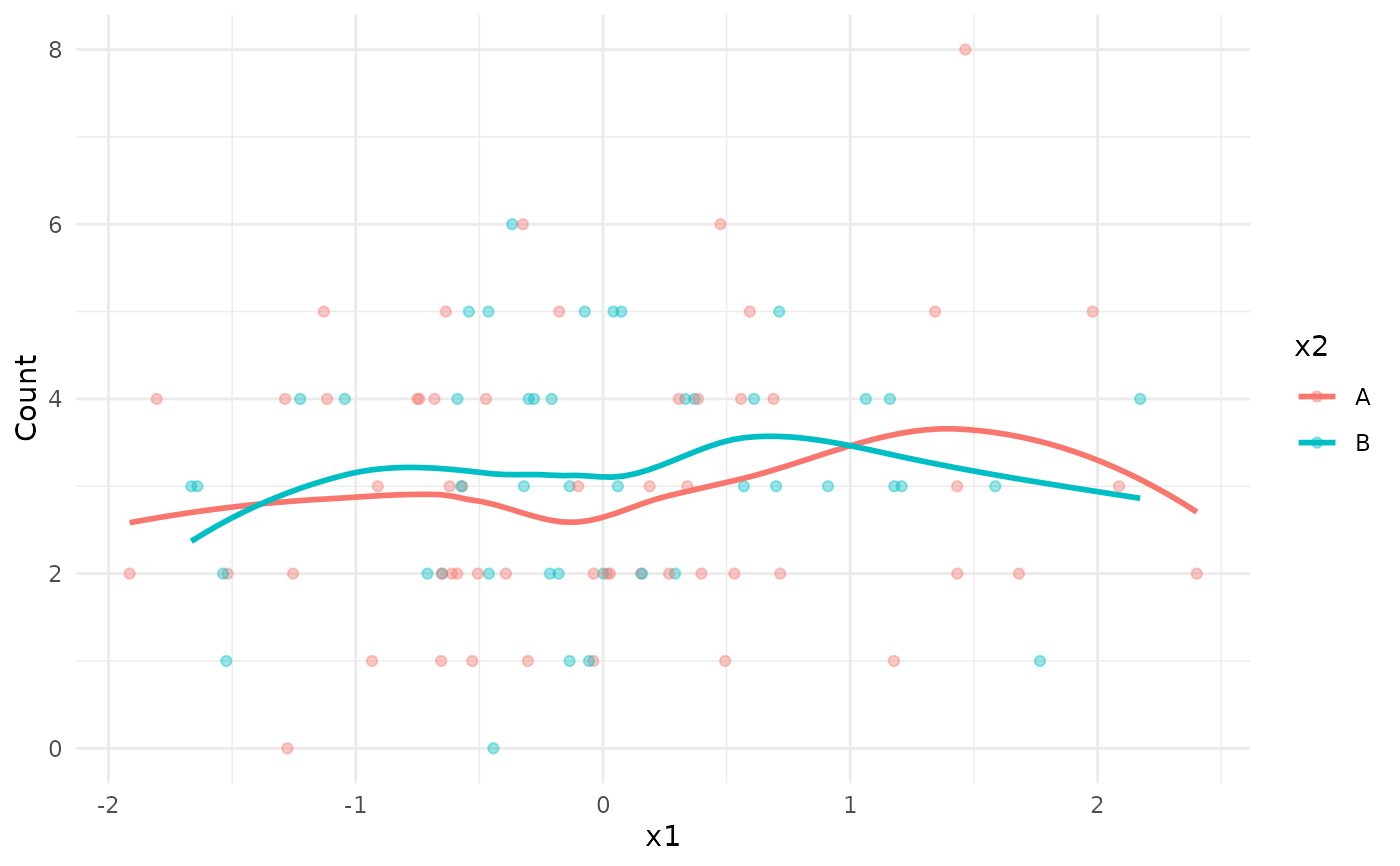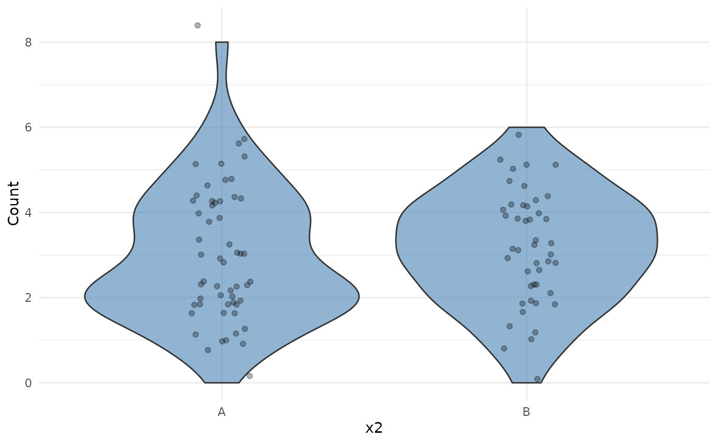 y ~ x1 + x2 + ...whereyis a non-negative integer count response. Offsets viaoffset()are supported.- data
